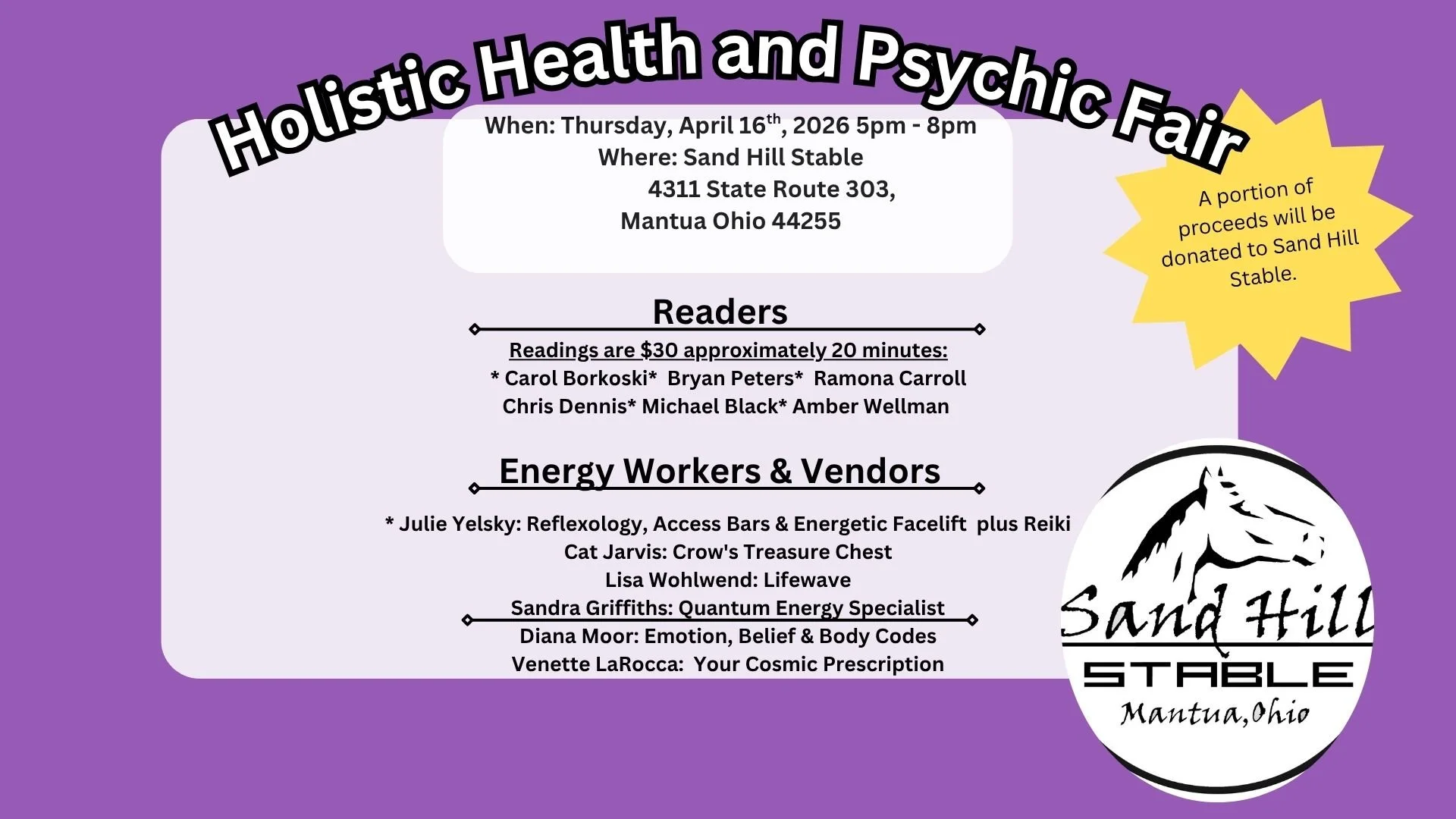โจ Join Us for the Holistic Health & Psychic Fair Fundraiser at Sand Hill Stable! โจ